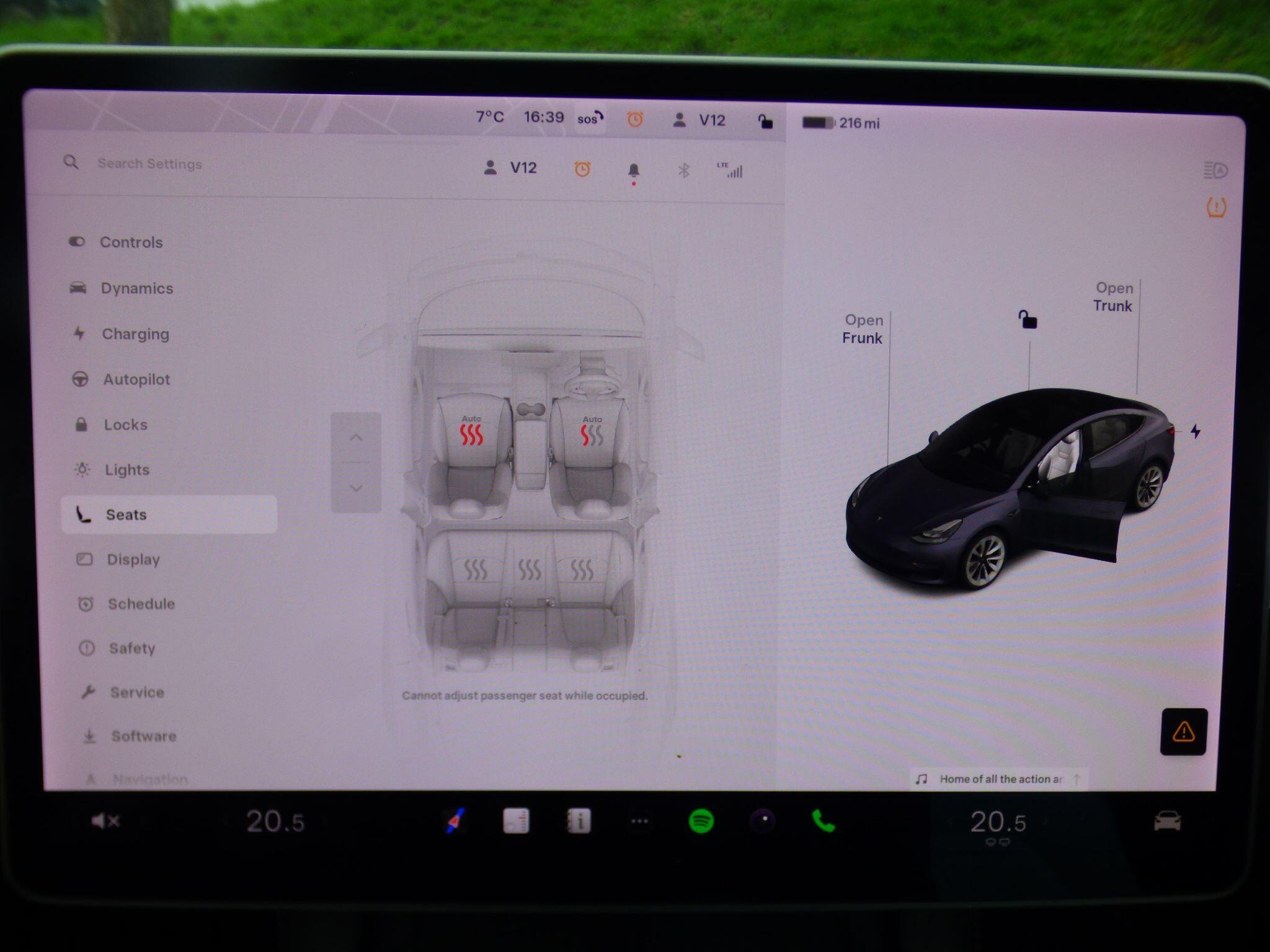 - Graphite Finish Seat Controls